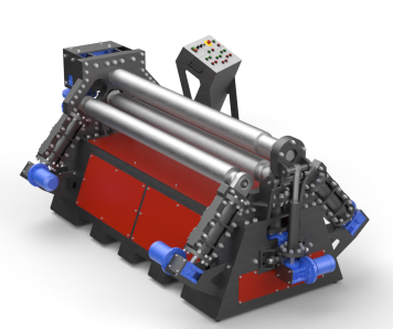 •Для более точного проката обечайки и возможности проката конусной заготовки предусмотрена асинхронная регулировка положения боковых и нижний валов