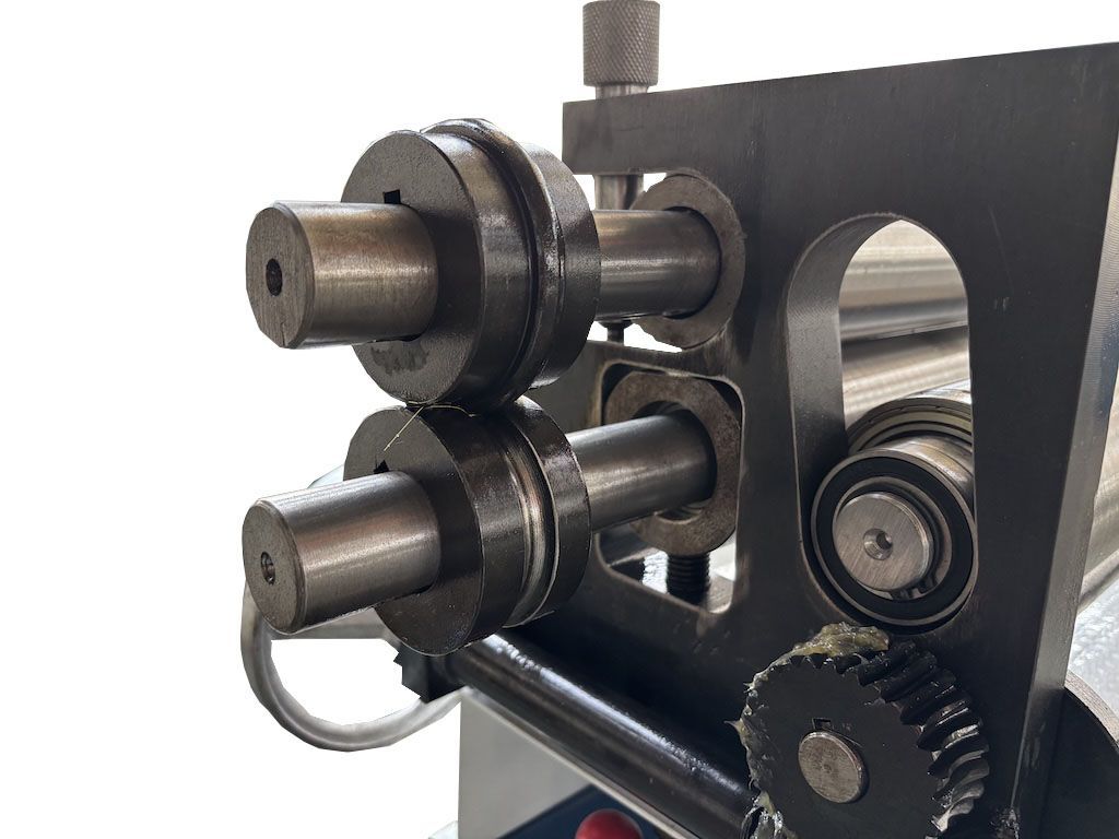 Вальцы оборудованы съемным валом, и удобными регулировками положения верхнего и нижних валов, что позволяет быстро перенастроить станок при изменении толщины заготовки, а так же увеличивает производительность станка. Модуль для зиговки труб позволяет наносить отбортовочный зиг.
