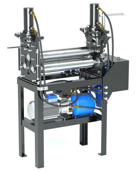 Трехвалковый гидравлический вальцовочный станок, предназначенный для изготовления цилиндрических обечаек и дугообразных элементов различного радиуса, из листового проката, цветных металлов и сплавов. Гидавлические вальцы применимы в вентиляционно-заготовительном производстве, при изготовлении воздуховодов, водосточных и ливневых систем, в строительстве, оказанию услуг по вальцовке и металлообработке листового проката, а так же и на других производствах.