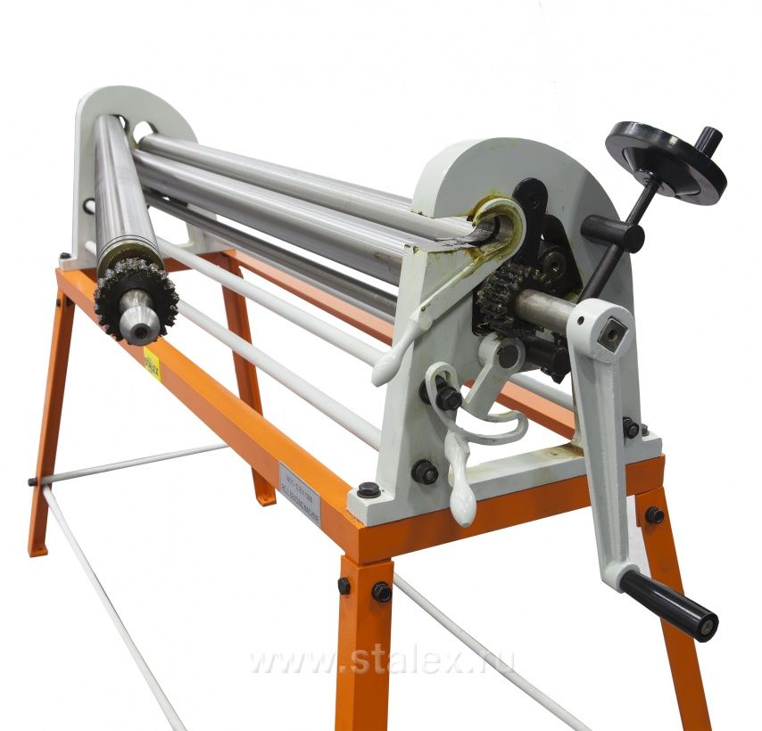 Вальцовочный станок Stalex W01-0.8x1300 предназначен для придания листу цилиндрической и конической формы в виде обечаек различного радиуса, данное оборудование широко применяется для изготовления профессионального-индивидуального и мелкосерийного производства комплектующих вентиляции, водосточных элементов, в случаях производства цилиндрических и конических изделий (для вальцевания конических изделий, форма заготовки должна предварительно подготавливаться [вырезаться] с необходимого эскиза и рассчитанными размерами), правке плоских заготовок, подгибке кромок.