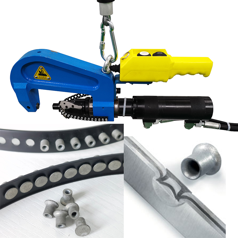 Пресс-насадка сначала перемещается вниз, чтобы предварительно прижать клепочный материал, чтобы предотвратить попадание клепочного материала в матричный пласт под силой заклепок, А затем пуансон перемещается вниз, чтобы протолкнуть заклепку через верхний материал.