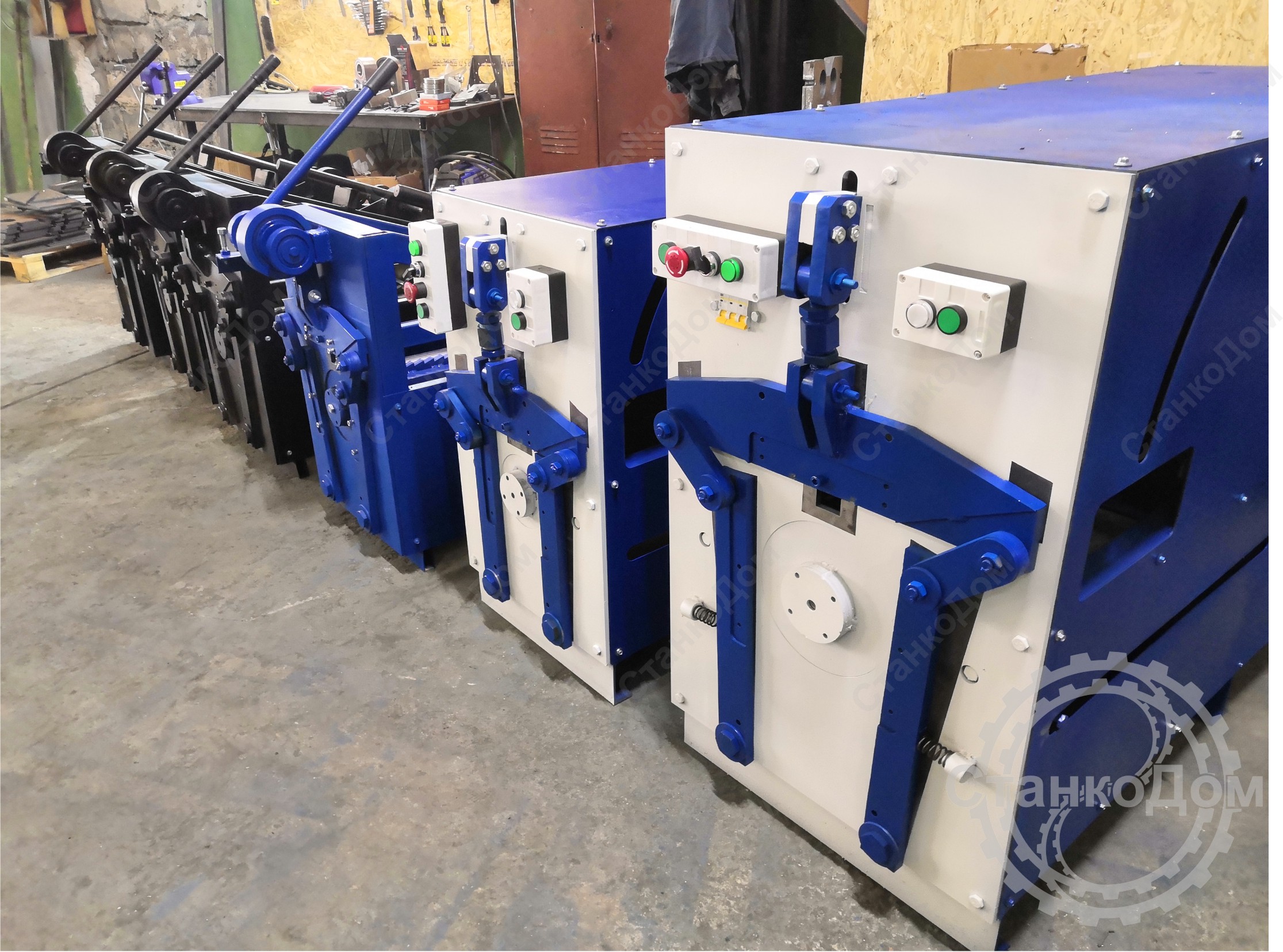 Станки изготавливаются для сети 380В, для подключения 220В и гибкого управления приводом используется частотный преобразователь (на 220 или 380В) для более быстрой остановки станка и прочих регулировок связанных с управлением скоростью работы (входит в комплект к станку).