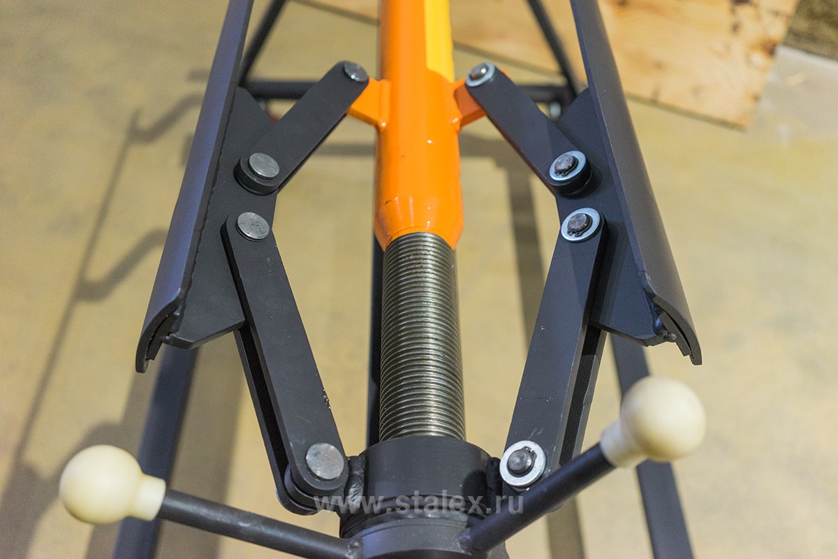 Благодаря вращению ручки и взаимному синхронному разжиманию лепестков, можно быстро и точно зафиксировать рулон.