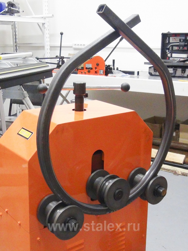 Трубогибы электромеханические предназначены для радиусной гибки, методом прокатывания заготовки между верхним прижимным роликом и двумя нижними приводными роликами. Модель Stalex ERB-76B придаёт определенную форму трубам и металлическим профилям, применяемым для производства парников, теплиц, навесов, козырьков, а также уличной и садовой мебели. Гибка производится в холодном состоянии, с макс. углом загиба 360°.