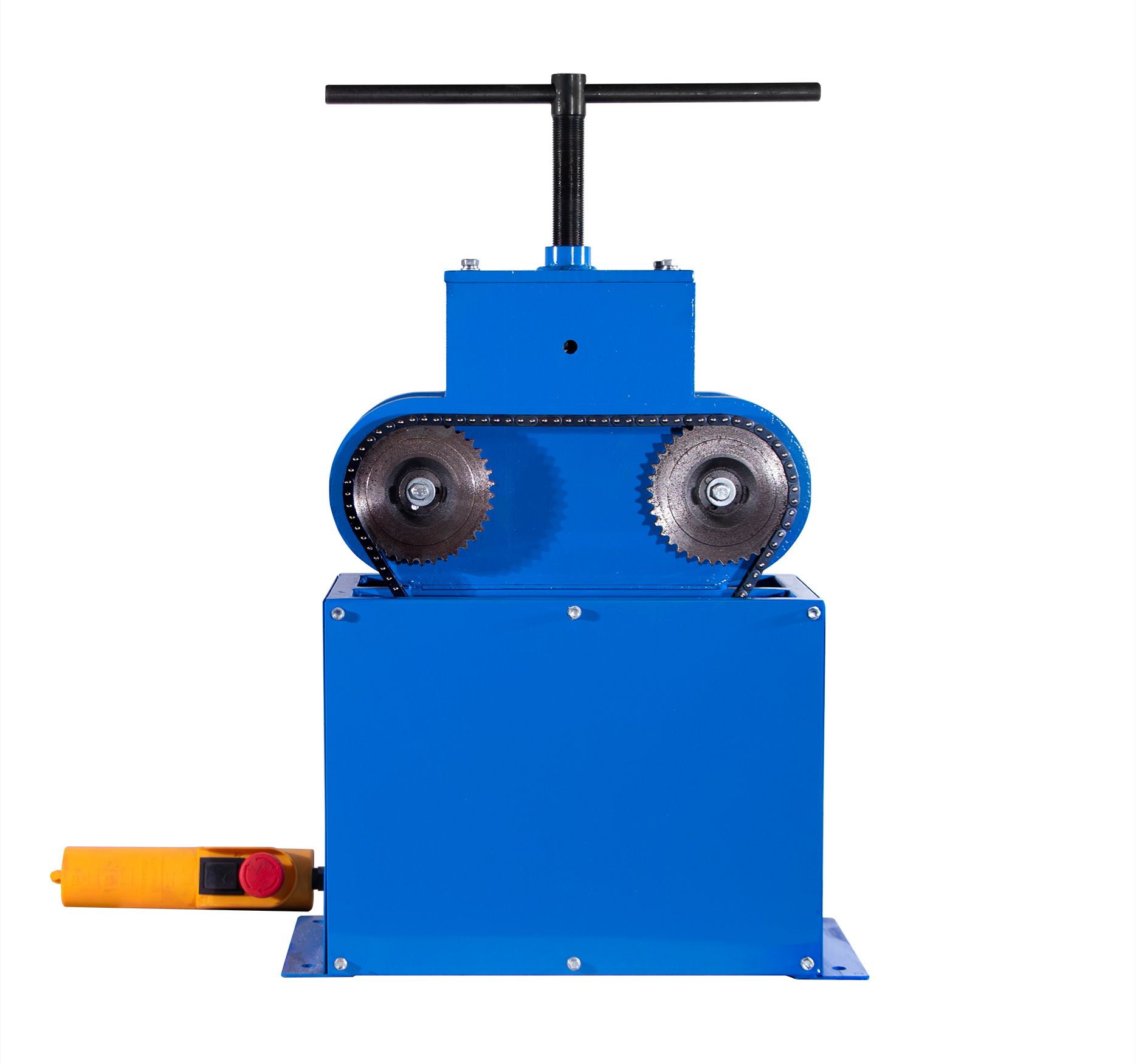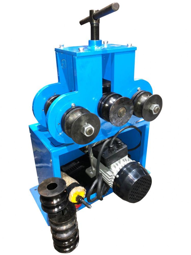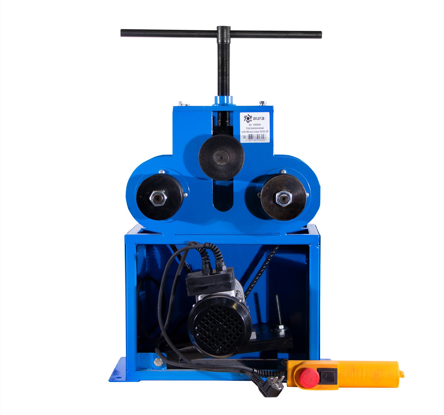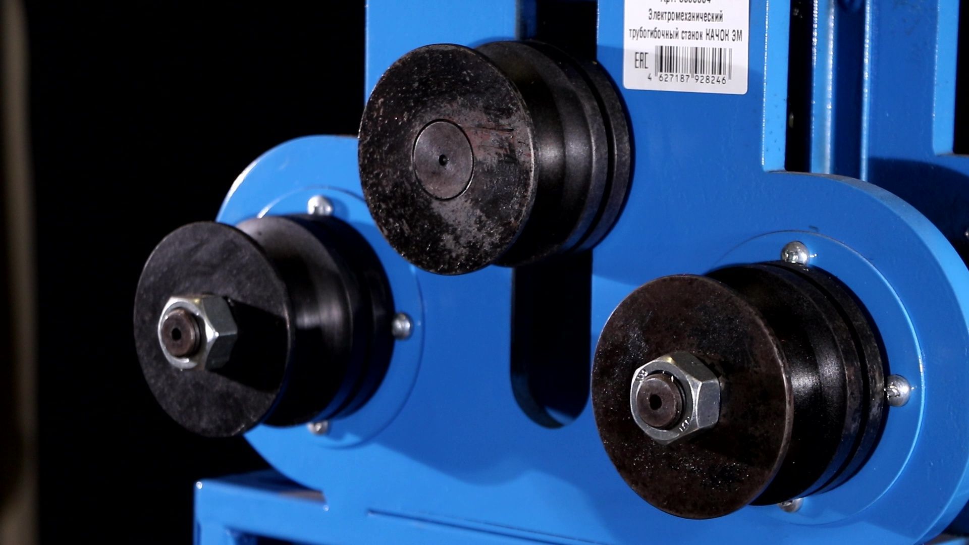 Трубогиб «Качок ЭМ» электромеханический станок предназначен для сгибания стальных профильных и круглых труб путем проката по заданному радиусу и придания им формы, а также полнотелых квадратов и полосы по ребру и плашмя. Трубогиб разработан для кузнечных и слесарных мастерских. Электромеханический привод с цепной передачей на два нижних вала существенно облегчает работу. Станок комплектуется выносным пультом управления с кнопкой «стоп». Может работать в напольном и настольном положении. Качок ЭМ позволяет прокатывать несколько профильных труб небольшого размера. Например: 15х15 и 20х20 мм. Работает с квадратными и прямоугольными трубами :10х10,15х15, 20х20,25х25, 30х30,40х40,50х25,40х20 и другими трубами. Толщина стенки трубы: 1,5 – 2,0 мм.