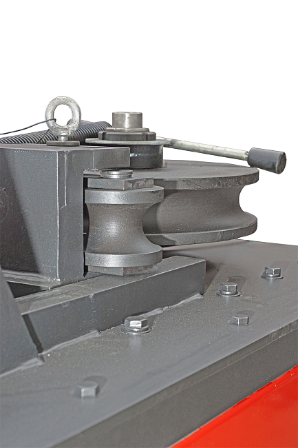 Станок для гибки трубы WG51 предназначен для изготовления изогнутых деталей из металлических труб диаметром до 51 мм. Он работает по принципу, когда труба подается между роликами, где специальное ушко захватывает трубу, а главный диск изгибает ее в нужном направлении и под нужным углом.