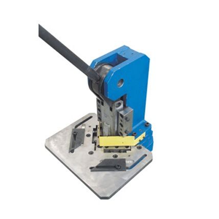 Угловырубная машина удобна в работе. Приводится в действие под действием рычага. Угловырубная машина позволяет делать углы строго на 90 градусов, как перпендикулярно краям изделия, так и под произвольным углом.