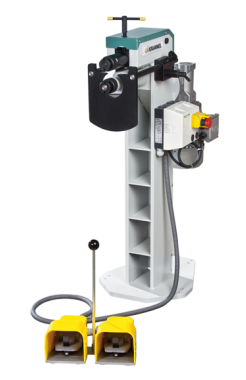 SB7 – электромеханическая зиг-машина для обработки металла толщиной до 2,0 мм. Идеально подходит для серийного изготовления деталей кровли и вентиляции. Имеет вылет роликов 260 мм. Зиговка поставляется с цельнометаллической стойкой и электроприводом (SB7R с 1 фиксированной скоростью и двойной педалью управления; SB7RVV c плавно регулируемой скоростью, трехпозиционным переключателем направления вращения вперед-стоп-назад и одинарной педалью управления).