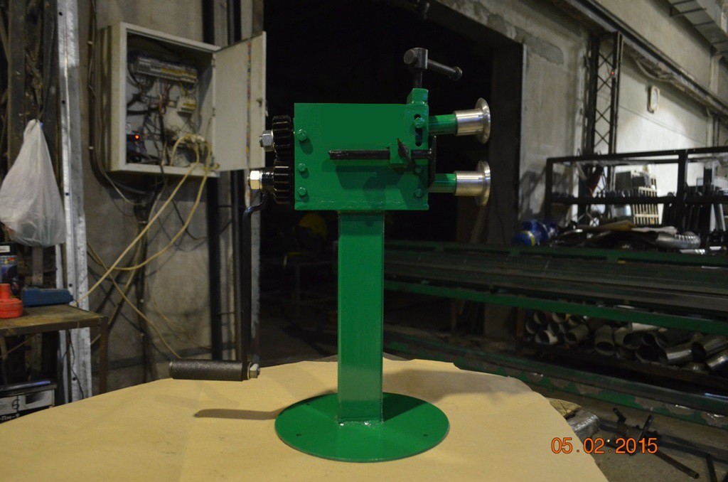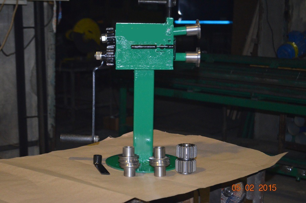 Движущей силой зиговального станка является жестянщик, который своими руками чувствуя металл вращает рукоять привода.