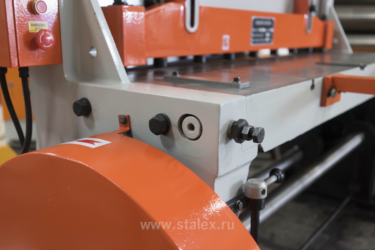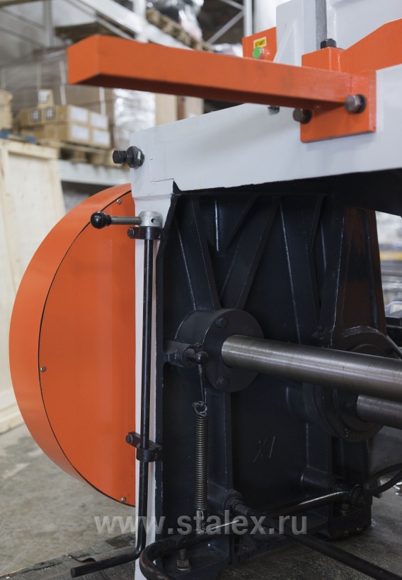 Станок оснащен качественными долговечными ножами из инструментальной легированной стали 9CrSi, с твёрдостью закалки 45-50 HRC, с 4 режущими кромками на верхнем и нижнем ножах, толщина ножа 18мм. Кривошипно-шатунный механизм позволяет работать с высокой скоростью резки – до 20 циклов/минуту (в зависимости от толщины и материала), без перегрева станка (и дополнительным временем на его охлаждение), а также более низким потреблением энергии.