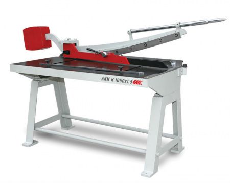 Гильотинные ножницы по металлу сабельного типа AYSANMAK AKM - ручные сабельные ножницы. Несмотря на простейшую "ручную" конструкцию, это станки с тяжелой станиной, которые позволяют рубить лист такой толщины, которую часто раскраивают на электромеханических/пневматических ножницах.