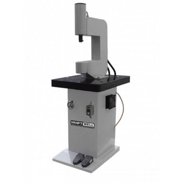 Принципиальное отличие от станков KRW300 и KRW300S заключается в использовании электродвигателя в качестве источника энергии, а непосредственно процесс расклепки и заклепки осуществляется за счет давления гидравлического насоса, работающего от электродвигателя. Использование гидравлики обеспечивает более плавный ход пуансона.