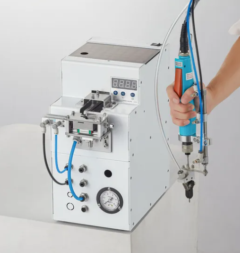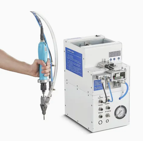 4. Дважды нажмите кнопку электрической отвертки при первом откручивании винта (дважды нажмите кнопку электрической отвертки в течение 0,5 секунды). Когда винты будут зафиксированы, электрическая отвертка автоматически затормозится. В этот момент необходимо приподнять электрическую отвертку, чтобы она оторвалась от поверхности изделия, а затем отпустить переключатель режима работы отвертки. Цилиндр электрической отвертки автоматически опустится и выпустит винт.