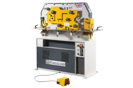 Универсальные компактные гидравлические пресс-ножницы с 5-ю рабочими секциями, рассчитанные на большую нагрузку. Гидравлическая система включается с помощью защищенной щитком педали. Для каждого рабочего блока существует маломощный режим медленного движения штампа (ножей), что позволяет точно позиционировать заготовку и регулировать положение инструмента. Концевые переключатели обеспечивают точность хода верхней балки и, следовательно, высокую эффективности работы станка. Обратный ход балки автоматический. В секции резки угла обе его стороны могут отрезаться под любым углом от 45 до 90 градусов без дополнительных устройств на станке. Края углов можно подрезать под большим углом в секции ножниц (косая резка). Станки оборудованы системой централизованной смазки под давлением, соответственно, не требует больших усилий на обслуживание.
