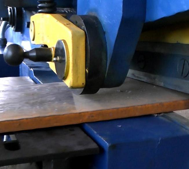 Листовой и зарубочный инструмент состоит из двух подвижных и трех неподвижных ножей. Подвижные ножи — гильотинный для резки листового материала и прямоугольный для прямоугольной зарубки.