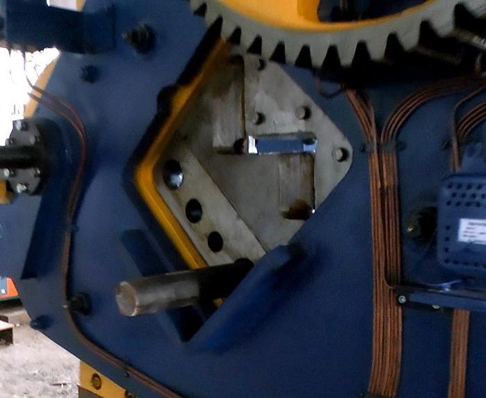 - рубка круглых прутков диаметром до 67 мм, уголков под 90° с предельными размерами до 160х150х20 мм, уголков под углом 45° с предельными размерами 125х125х14 мм, а также фасонных профилей до №30А;