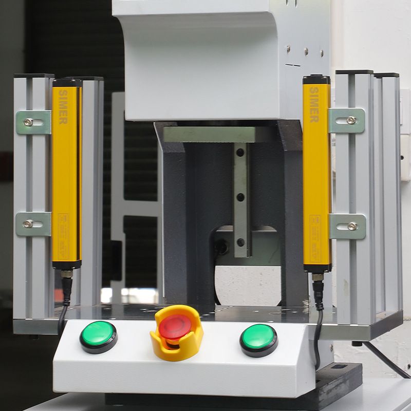 7. Большинство неисправностей, возникающих во время работы оборудования, отображаются на сенсорном экране, что позволяет производственному персоналу быстро устранять проблемы и восстанавливать производство на месте. 8. Оборудование использует защитную световую завесу для запуска и остановки. Оно останавливается, когда оператор засовывает руку внутрь, чтобы выпустить материал, и снова запускается, когда он вынимает руку, обеспечивая безопасность оператора.