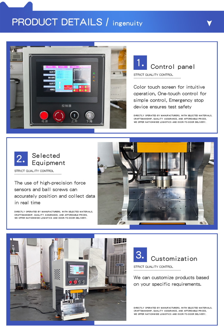 Этот настольный сервопресс широко используется для прецизионной запрессовки, испытаний материалов и автоматизированного производства. В частности, он подходит для запрессовки прецизионных компонентов, таких как подшипники, втулки и шестерни. Он поддерживает пятискоростную прецизионную запрессовку (быстрая подача, зондирование, запрессовка, удержание и возврат) с замкнутым контуром управления глубиной прессования. Он может проводить испытания на растяжение, сжатие, изгиб, сдвиг, отслаивание и разрыв, что делает его пригодным для исследований и разработок, а также для контроля качества таких материалов, как металлы, резина и пластик, кожа, провода и кабели, текстиль, упаковка и бумага.