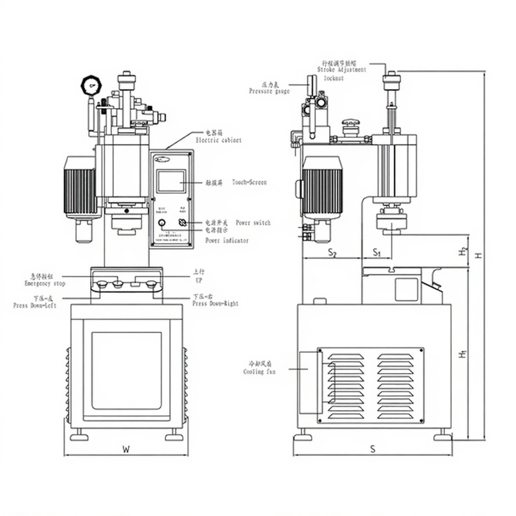 2. PLC контроль, установите скорость действия, давление, время, положение давления вниз на экране. Высокая степень, хорошая надежность.