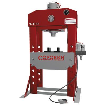 Пневмогидравлический пресс 7.100 находит применение в самых различных областях, но особенно актуально его применение при ремонтно-монтажных работах и обслуживании различных видов авто и мототехники. Современную станцию технического обслуживания невозможно представить себе без этого устройства. Для облегчения работы с прессом в конструкцию данного пресса добавлены: барабанная лебедка для изменения высоты станины и ножной пневмоклапан .