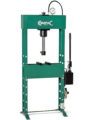 Напольный гидравлический пресс Compac HP25 с возможностью перемещения цилиндра. Насос с ручным и пневматическим приводом. Есть возможность автоматического возвращения рукоятки в исходное положение. Встроенный манометр. Конструктивные особенности: Ручной пневмо-привод насоса; Поверхность гидроцилиндра хромированная