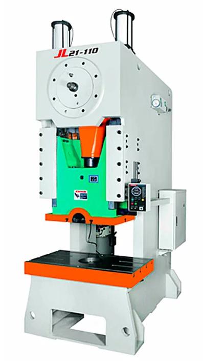 Кривошипные двухстоечные прессы с регулируемым ходом и С-образной станиной серии JL21 обладают современным дизайном, повышенной скоростью, комбинированной пневматической муфтой-тормозом, гидравлической защитой от перегрузки, автоматической системой циркуляционной жидкой смазки, балансировочными цилиндрами компенсации веса штампа и пр. Прессы серии JL21 хорошо подходят для всех типов штамповочных работ, таких как вырубка, пробивка, формовка и вытяжка, как в одиночку, так и в составе линии.