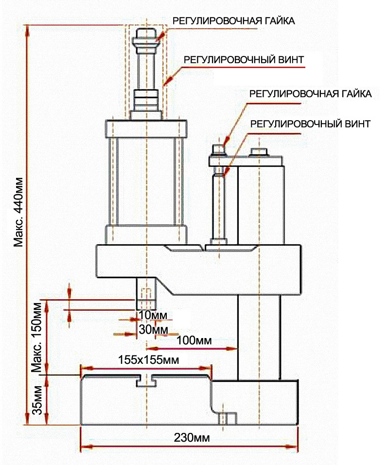 - Усилие пресса составляет 200 Кг.