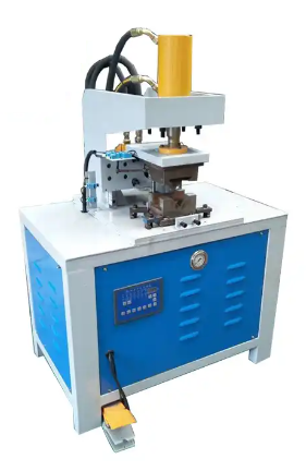 Гидравлический пресс для надрезки квадратного и прямоугольного профиля на угол 45 или 90 градусов предназначен для быстрой и точной вырубки и дальнейшего сгибания его в П-образный вид или замкнутый контур. Режущий инструмент работает от гидравлического привода автоматически пробивая профиль после нажатия на ножную педаль. Машина может работать с различными материалами, такими как: конструкционная и нержавеющая сталь, алюминий и др.