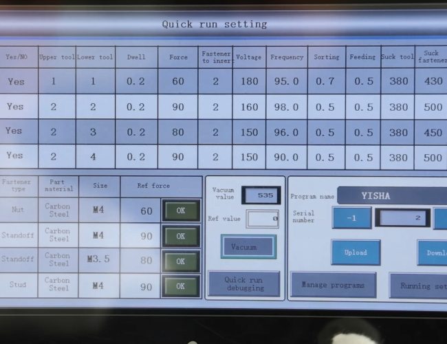 Упрощенное программирование: независимо настраивайте давление, время выдержки и количество крепежа на каждой станции. Контролирует давление вакуума и воздуха в режиме реального времени для предотвращения ошибок.