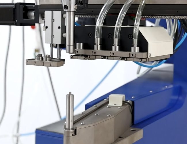 Автоматический верхний сменщик инструмента на 4 станции: поддерживает до 4 различных размеров и типов крепежа благодаря вакуумной адсорбции. Обеспечивает быструю установку со скоростью 1 цикл за 2,5 секунды и сменой инструмента за 3 секунды.