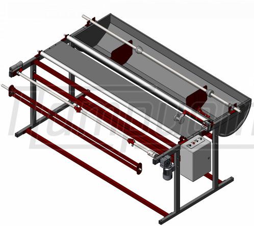 Мерильно-браковочная машина МБМ-М1-2000-МТ позволяет перематывать ткань с рулонов шириной до 1600 мм, диаметром до 600 мм и массой до 100 кг. Наличие подающей оси и корзины позволяют разматывать материал как с рулонов на шпуле, так и без неё.
