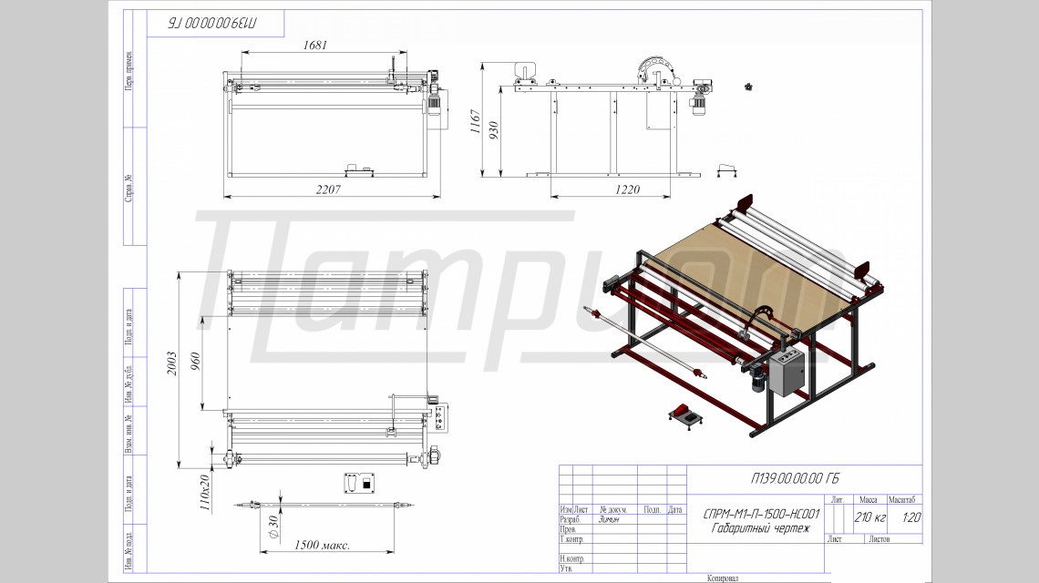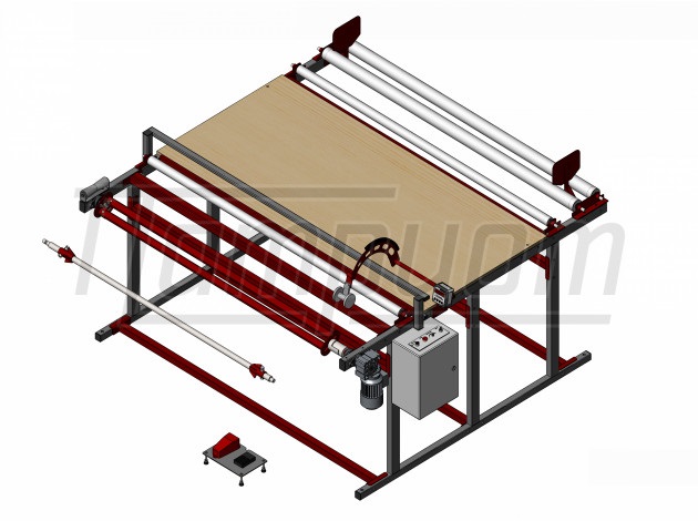 Мерильно-перемоточный станок СПРМ-М1-П-1500-НС001 - специальное исполнение перемотчика рулонным материалов СПРМ-М1-П для мерной отмотки мебельных тканей.