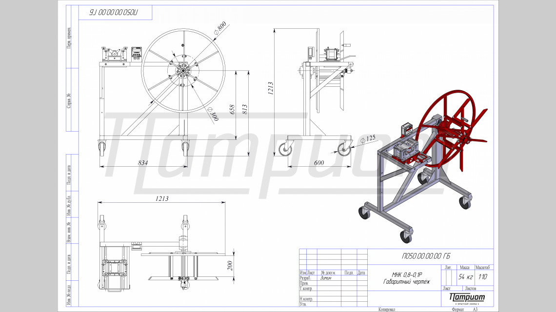 Станок МНК 0, 8-0, 1Р Патриот состоит из следующих основных узлов: сварная рама на колёсных опорах, складной технологический барабан, ручной раскладочный механизм и измеритель длины МИД 40 Патриот.