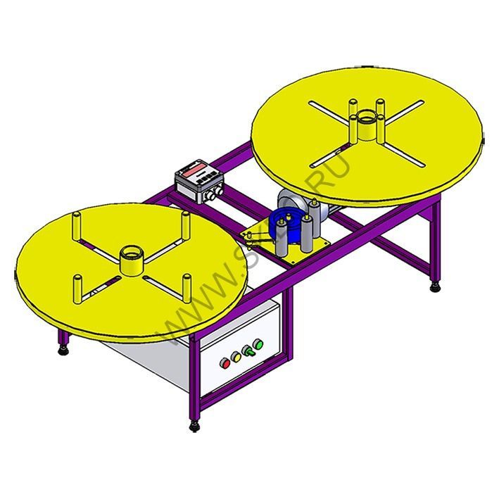 Станок оснащается электрическим приводом, которым можно управлять как в ручном режиме (пуск и остановка с пульта), так и в режиме предварительной установки длины (пуск с пульта и автоматическая остановка по достижении заданной длины). Для удобства фиксации исходной и готовой бухты, приёмный и отдающий технологические барабаны устройства содержат раздвижные штыри, фиксирующие бухты за внутреннюю поверхность. Устройство для перемотки мебельной кромки может осуществлять перемотку как на втулку, так и безосновную перемотку.