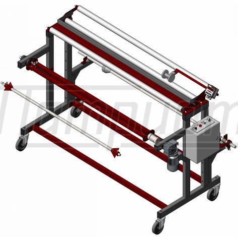 Отмоточный станок СНРМ-М7-П предназначен для проведения мерных отмоток рулонных материалов, таких как плёнка, спанбонд, укрывной материал, ткань со стеллажа. Для лёгкого перемещения вдоль стеллажного ряда станок комплектуется поворотными колёсными опорами с тормозными механизмами (стопорами).