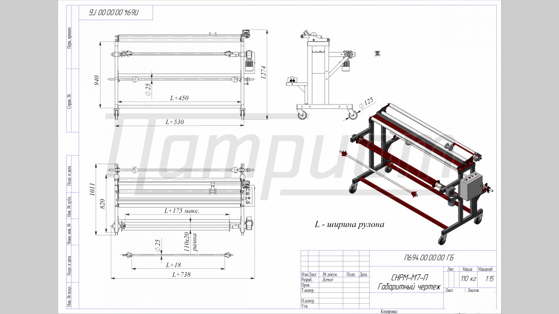 ВАЖНО! !! Все станки типа СНРМ-М7-П выпускаются под заказ и рассчитываются по ширине перематываемого материала. Причем крайне не желательно заказывать станок с большим запасом по ширине перематываемого материала, т.к. это приведёт не только к удорожанию оборудования, но и к возможному прогибу намоточной оси или рамки, что негативно скажется на качестве перемотки - материал будет наматываться криво и возможно появление складок.