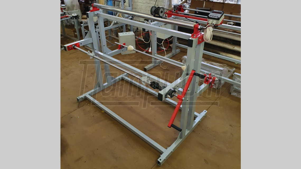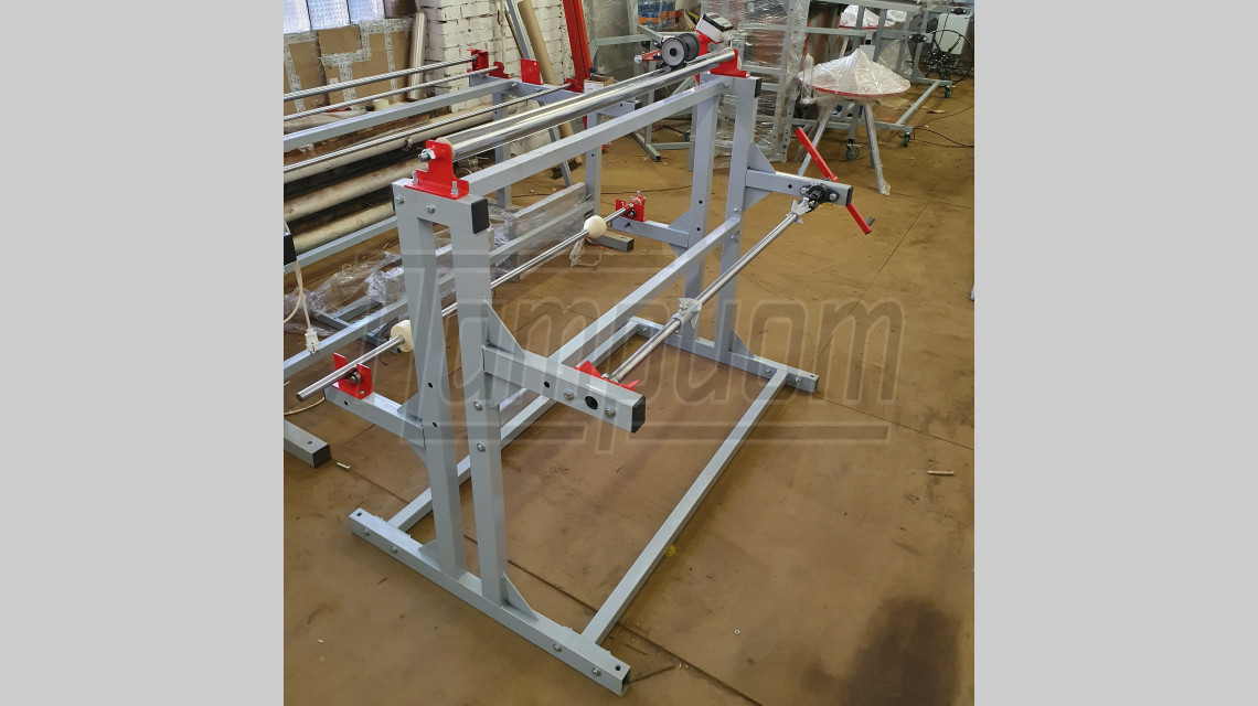 Станок для отмотки рулонных материалов СПРМ-М6-Р комплектуется осью с конусными втулками для отмотки материала на картонные шпули или технологической рамкой для отмотки без использования шпуль (втулок, тубусов).