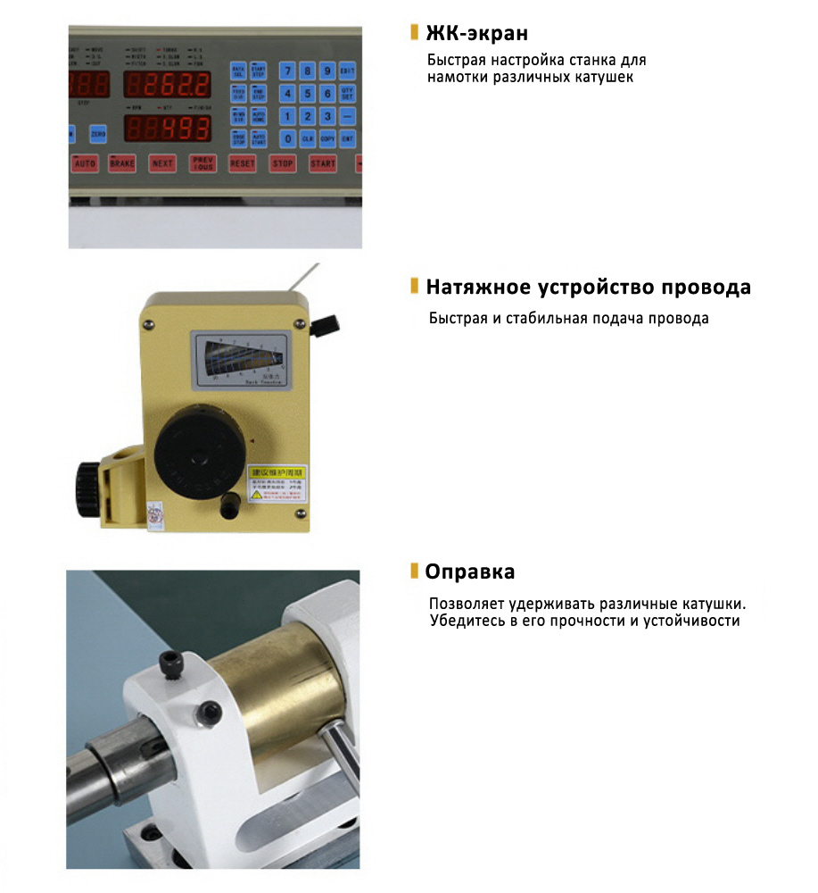 - Направляющая траверса раскладчика позволяет оперативно управлять шагом подачи провода на ось вала шагового двигателя постоянного тока";