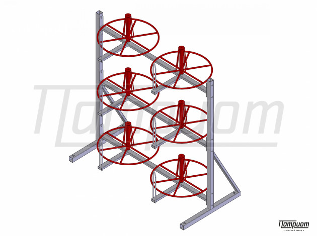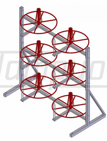 Стеллаж для бухт СБ 6-0,5-30э позволяет хранить 6 кабельные бухты на вращающихся технологических барабанах.