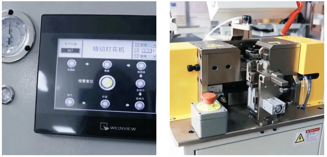 ·Пневматическая резка: пневматический цилиндр толкает резак для быстрой резки стальной проволоки.