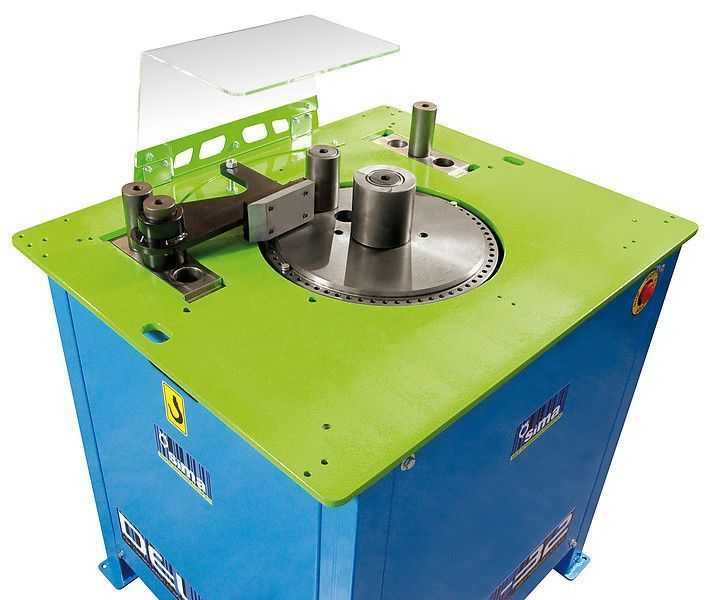 Гибочный станок SIMA DEL 32 с трехфазным электроприводом мощностью 2,2 кВт сконструирован для работ по гибке гладкой и гафрированой арматуры диаметром от 14 до 32 мм. Гибка производится специальными стержнями разного диаметра (60 и 100 мм), которые установлены в центре гибочного механизма и вращаются при помощи мощного редуктора, передающего энергию от двигателя. Для достижения необходимого угла гибки, станок оборудован угломером. Мощность двигателя и особенность конструкции станка позволяют производить сгибку одновременно до трех прутов, что дает значительный прирост в скорости работы и экономит время на трудозатраты.