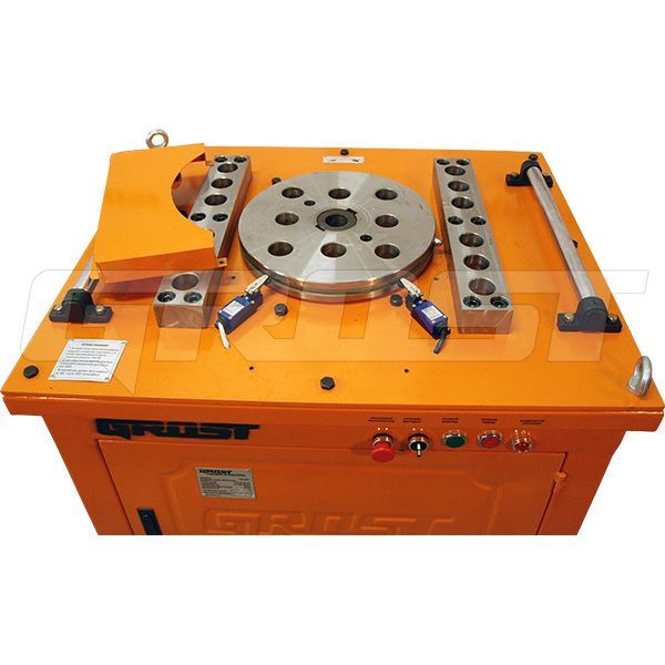 В станке RB-40SA 2 концевика, настройка каждого угла гибки осуществляется с помощью болтов, устанавливаемых в торец планшайбы. Электроподключение осуществляется через пятиконтактный разъем. На станке установлено тепловое реле для защиты мотора, а также в комплекте идет УЗО для защиты оператора.