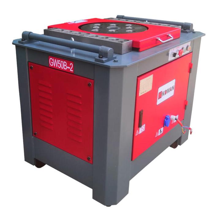 KOMAN GW40B-2 - профессиональный гибочный станок с подключением к трехфазной сети 380V. Применяется для создания форм, углов, крюков из арматурных стержней. В зависимости от класса прочности и предела текучести допускаются различные диаметры прутков. Для класса A-I заготовки до 40 мм, для класса A-III до 32 мм.