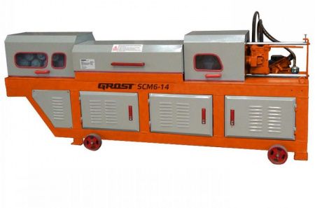 Станок, способный работать с арматурой диаметром до 14 мм, является наилучшим для больших объемов работ, так как обеспечивает максимальную скорость протяжки, а, следовательно, производительность.В комплекте идет приемный лоток для готовых прутков длиной 8 м. Возможно увеличение длины лотка с дискретностью 2 м по заказу клиента. Станок оснащен как автоматическим цифровым датчиком метража, так и дублирующим его аналоговым ограничителем, позволяющим устанавливать требуемую длину прутка вручную.