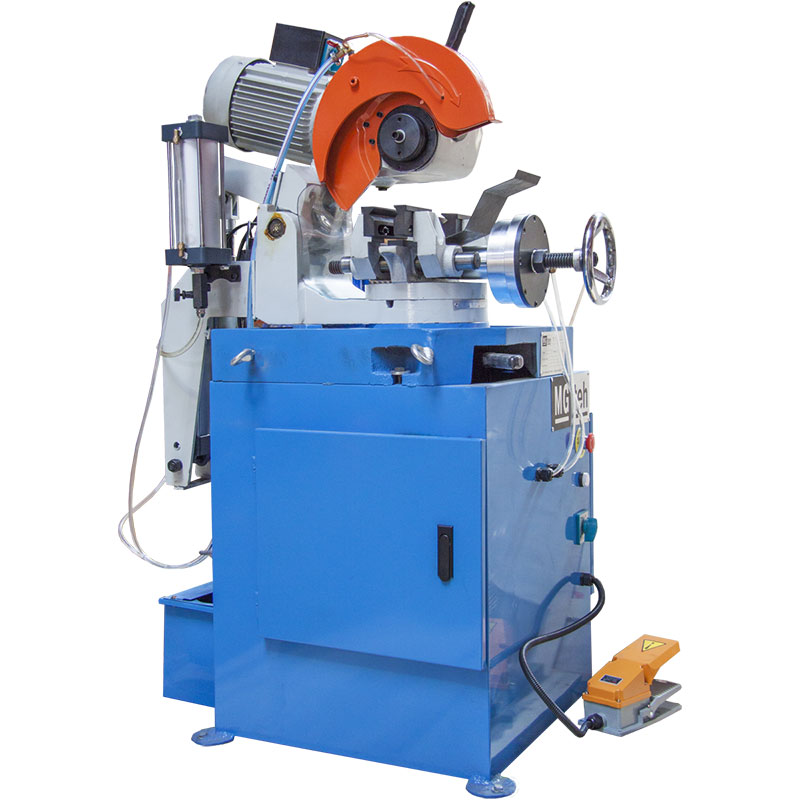 MG-315 SA-P — полуавтоматический дисковый отрезной станок c пневматическим приводом и встроенной системой охлаждения, предназначенный для резки круглых, квадратных, прямоугольных, профильных труб и прутков из низкоуглеродистой и нержавеющей стали. Управление станком осуществляется с помощью ножной педали.
