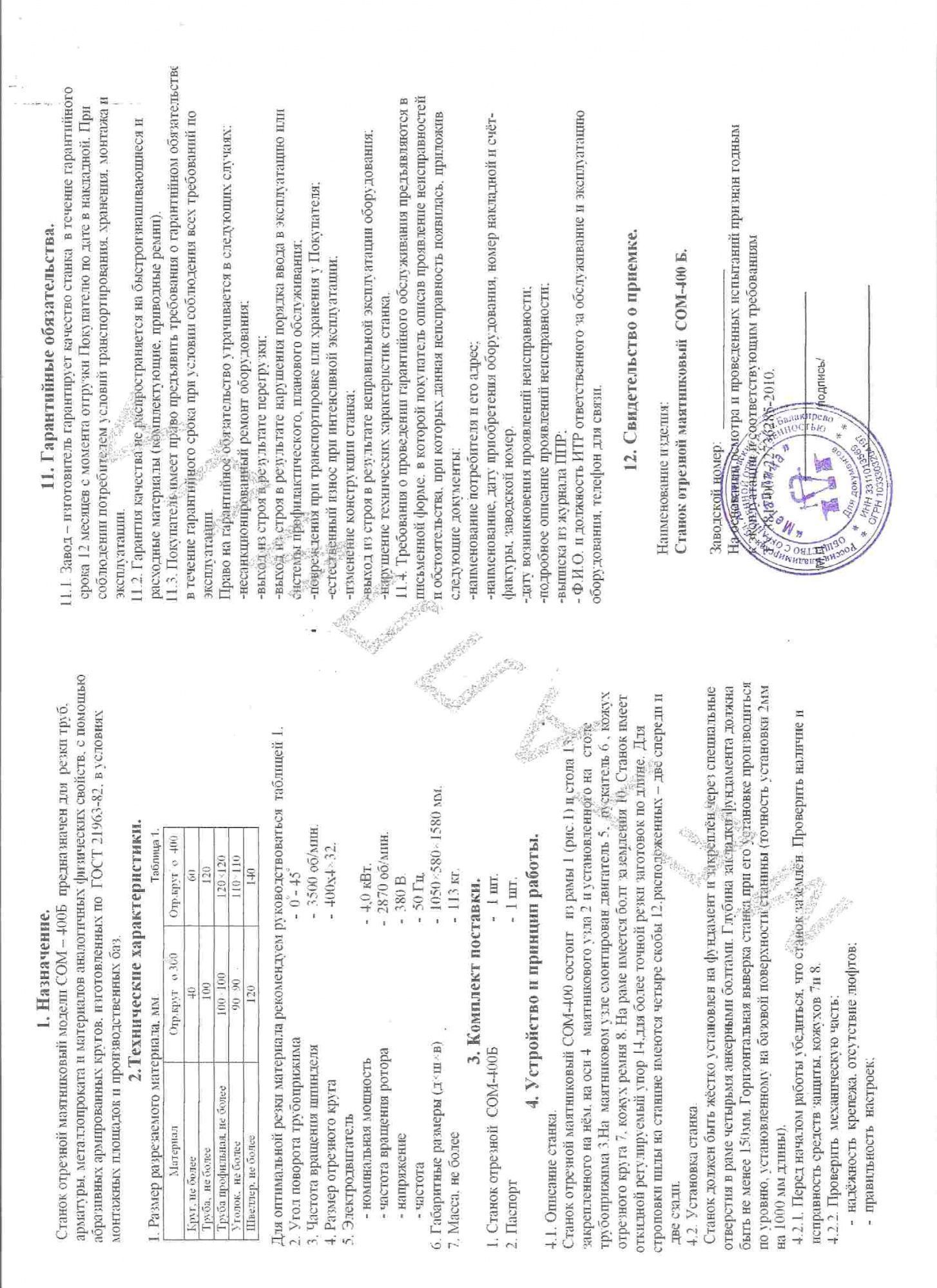 Модель станка СОМ-400Б в отличии СОМ-400 имеет повышенную мощность электродвигателя до 4 кВт. На станке установлены поворотные тиски которые позволяют резать заготовку от 0°- 45°.