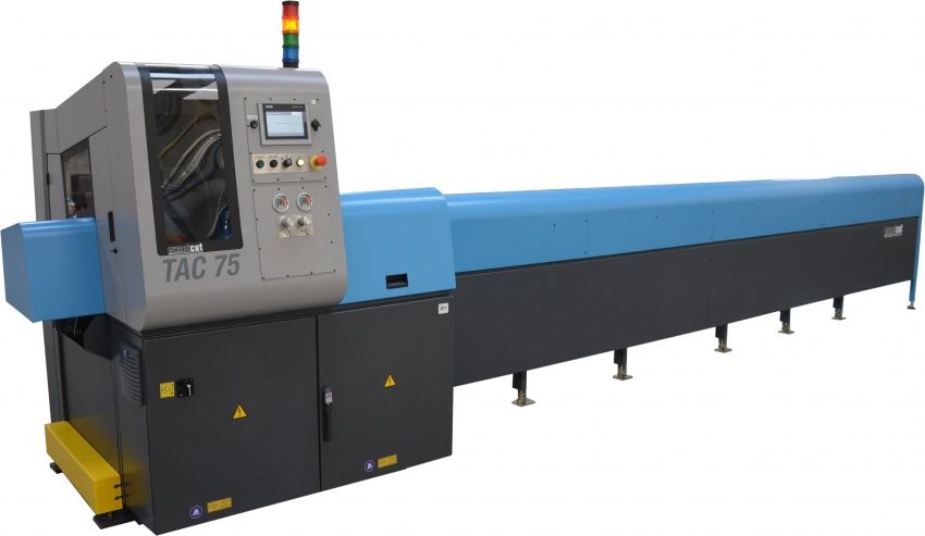 ExactCut TAC это циркулярная пила высокой производительности для пиления металлических прутков. Станок рекомендован для использования на серийных и крупносерийных производствах для раскроя сплошных и профильных заготовок. Стандартная длина заготовок 2.000-6.000 мм, диаметр 10-75 мм, резка под углом 90°. Стандартная длина отрезаемой части 15-300 мм с точностью ±0.1 мм.
