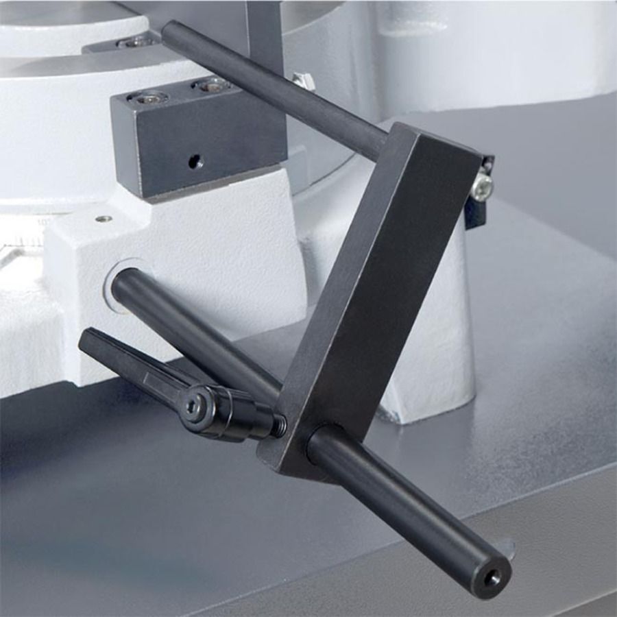 • Упрощенная конструкция зажима поворотного механизма и возможность выставления необходимого угла пропила по угловой шкале;