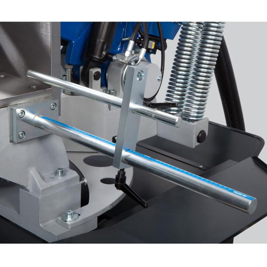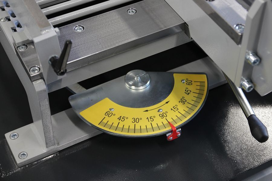 - Быстрозажимной механизм и плавная регулировка угла реза по шкале, или, в качестве опции, цифровой дисплей индикации угла поворота;