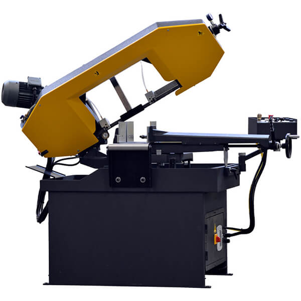 - Бесступенчатая регулировка скорости ленточнопильного полотна в стандартной комплектации. Позволяет точно настроить режимы резки под конкретную заготовку, тем самым увеличив срок службы ленточнопильного полотна.